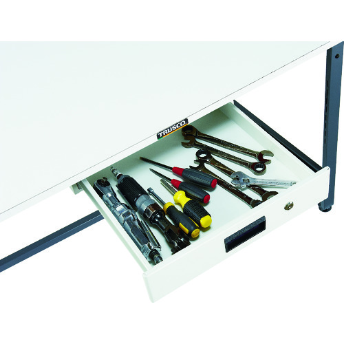 TRUSCO 軽荷重作業台高さ調節式(150kg)AEM型 1800X750XH650~950 薄型1段引出付 ホワイト色 RAEM-1800UDK1 W