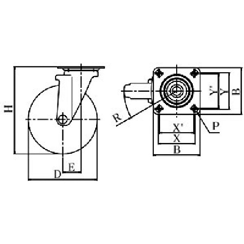 9. ユーエイ プレート式 自在 キャスター グレーゴム 車輪径150mm  Jタイプ RJ2型 取付寸法80×80(75×75) RJ2-150NWR-G