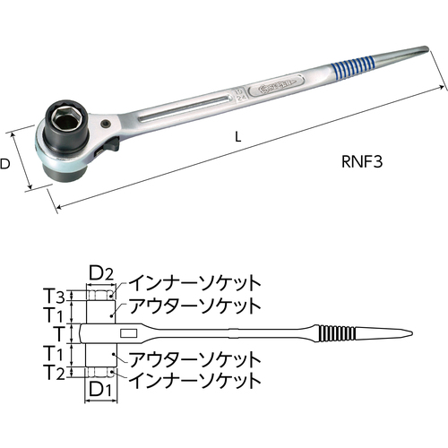 スーパー 4サイズラチェットレンチ インナーソケット:17、19 アウターソケット:21、24 RNF3