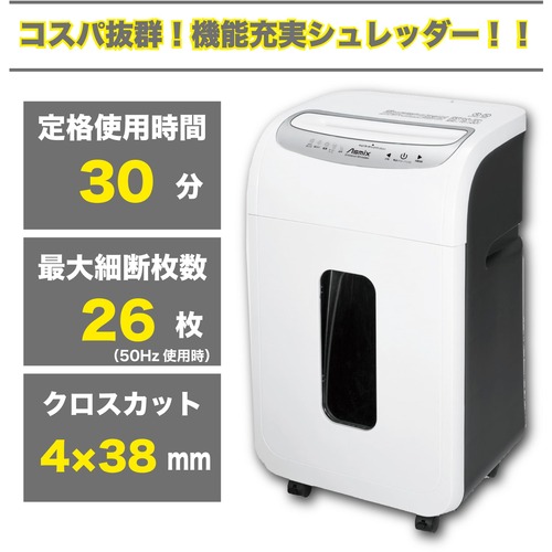 ●同価格帯の中で最大細断枚数が26枚(50Hz)と多く連続使用時間も30分と高耐久のハイスペックモデルです。