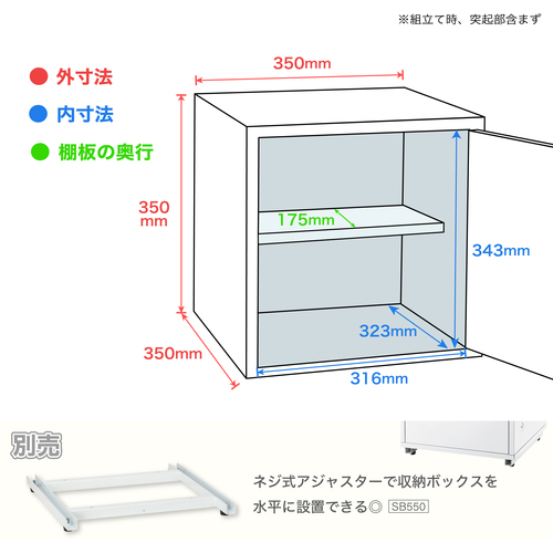 ●ボックス用ベース(別売SB550・アジャスター付き)に接続すれば安定性が増します。