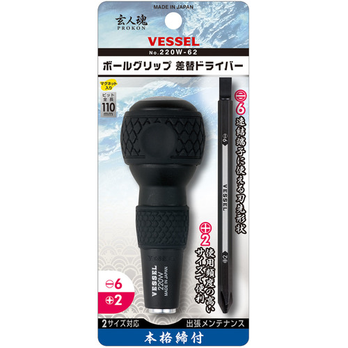 VESSEL ボールグリップ差替ドライバー No.220W-62(+2/-6) 220W-62