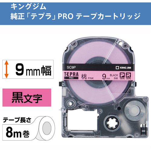 9. KING JIM 【純正】「テプラ」PROテープ 9mm ピンクラベル/黒文字 長さ8m SC9P