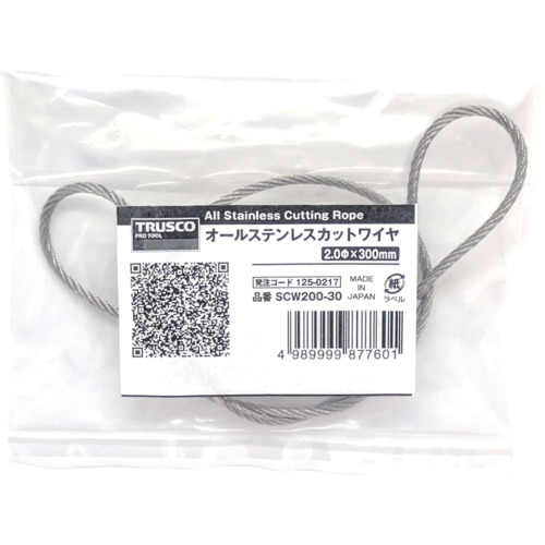 TRUSCO オールステンレスカットワイヤ 2.0ΦX300mm 両端アイ加工 SCW200-30