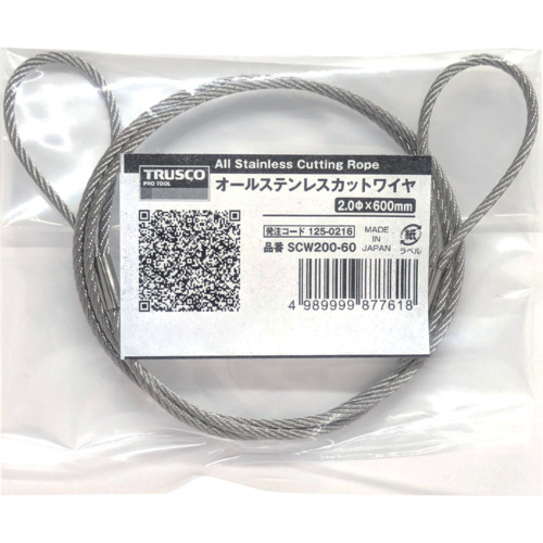 TRUSCO オールステンレスカットワイヤ 2.0ΦX600mm 両端アイ加工 SCW200-60