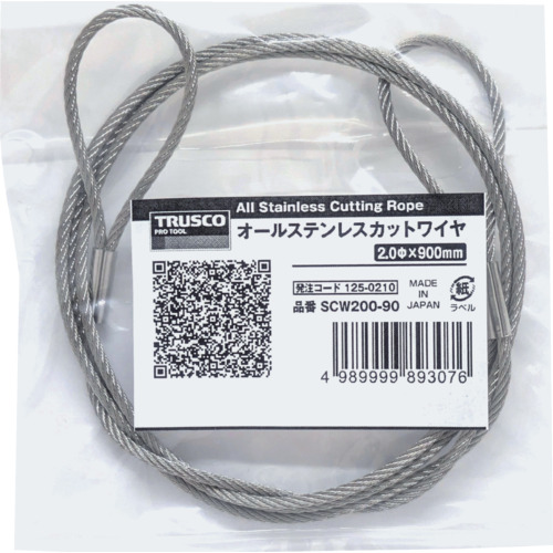 TRUSCO オールステンレスカットワイヤ 2.0ΦX900mm 両端アイ加工 SCW200-90