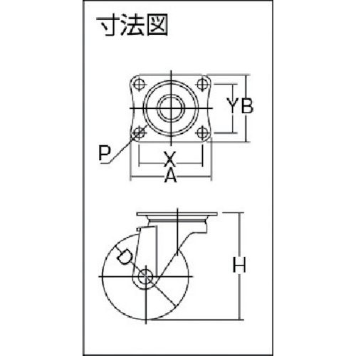 ユーエイ プレート式 自在 キャスター ゴム 車輪径50mm  Sタイプ SG型 取付寸法55×42 SG-50RH