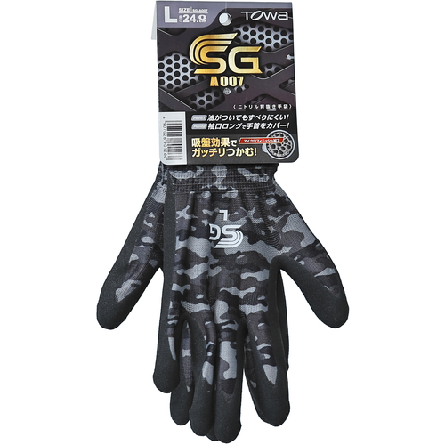 トワロン ニトリル背抜き手袋 SG-A007 迷彩グレー L SG-A007-L