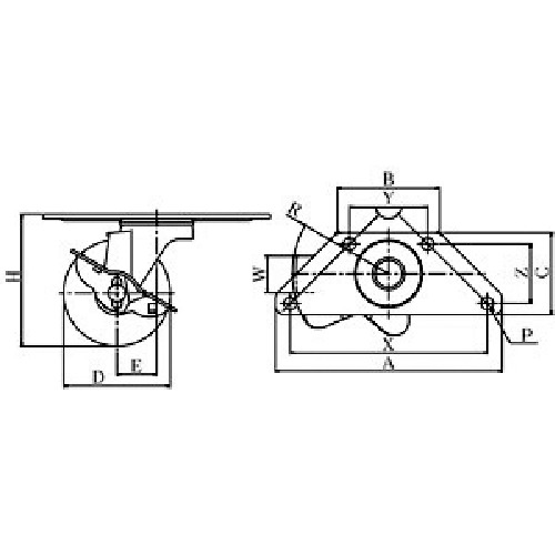 9. ユーエイ プレート式 自在 キャスター エラストマー 車輪径75mm ストッパー付き Sタイプ SGC-S型 取付寸法139×55×42 SGC-75ELS