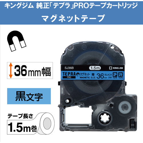 KING JIM 【純正】「テプラ」PROテープ 36mm マグネットテープ/青ラベル/黒文字 長さ1.5m SJ36B