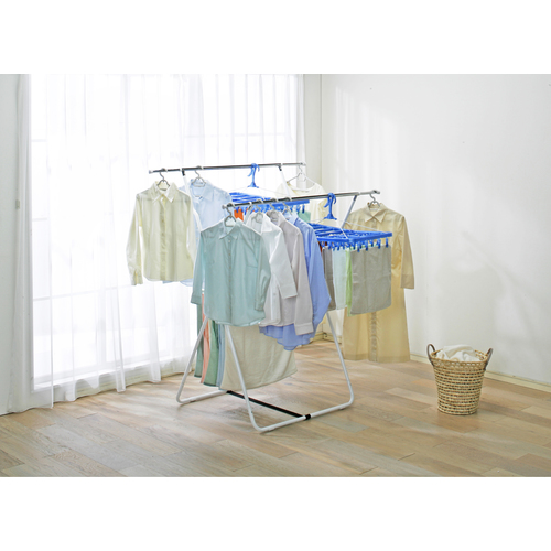 ●丈夫で、ぐらつきにくい室内物干しです。