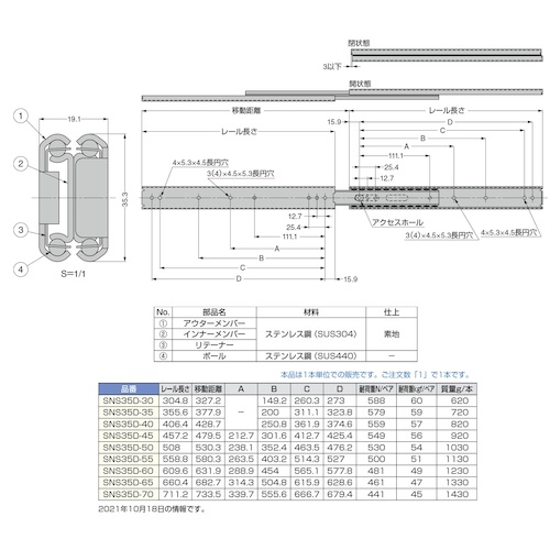 9. SUGATSUNE (190110208)SNS35D-70オールステンレス鋼製スライドレール SNS35D-70