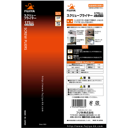 フジ矢 スクリュープライヤー 全長172mm SP26-175