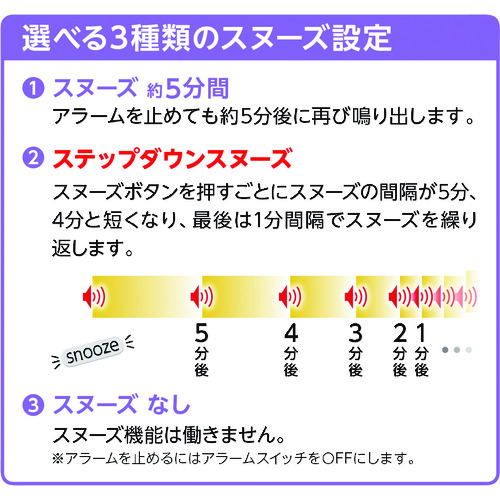 ●その他タイマー機能やスヌーズ機能など多彩なスペックです。