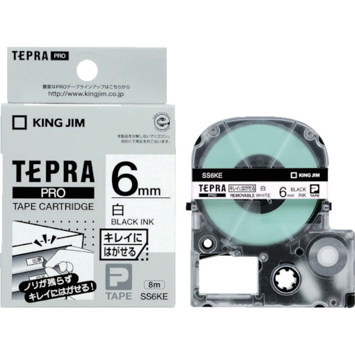 KING JIM 【純正】「テプラ」PROテープ 6mm キレイにはがせるラベル/白ラベル/黒文字 長さ8m SS6KE