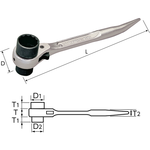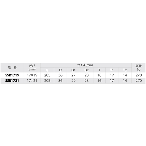 スーパー 曲がりしの付・両口ラチェットレンチ ミニショートタイプ 呼び:17×19 SSR1719