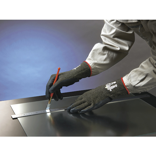 ●アラミド繊維とステンレスワイヤー糸の混紡で高い切創強度を発揮します。