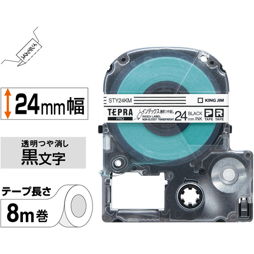 KING JIM 【純正】「テプラ」PROテープ 24mm 透明ラベル/黒文字 インデックスラベル 長さ8m STY24KM