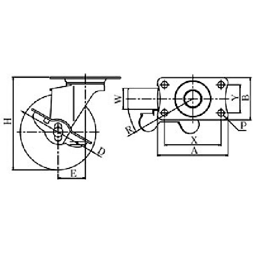 ユーエイ プレート式 自在 ステンレスキャスター ウレタン 車輪径100mm ストッパー付き Eタイプ SUS-E-S型 取付寸法82×40 SUS-E-100URS