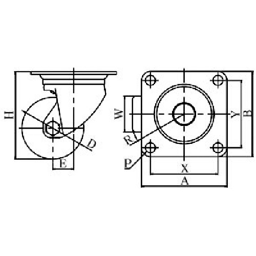 ユーエイ プレート式 自在 ステンレス低床キャスター 強化ナイロン 車輪径65mm Hタイプ SUS-HG型 取付寸法71×71 SUS-HG-65GNB