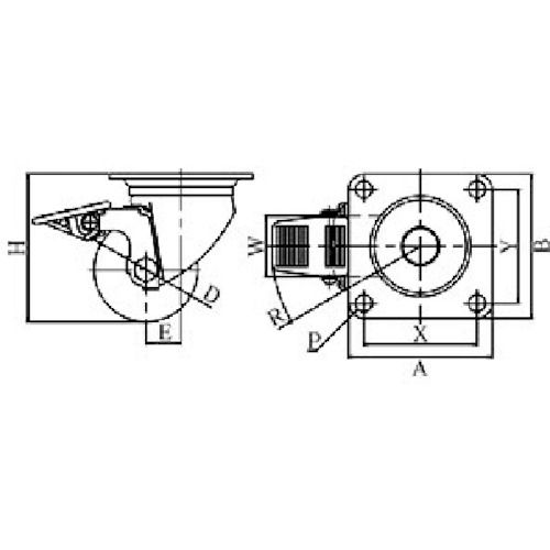 ユーエイ プレート式 自在 ステンレス低床キャスター 強化ナイロン 車輪径65mm ストッパー付き Hタイプ SUS-HG-S型 取付寸法71×71 SUS-HG-65GNBS