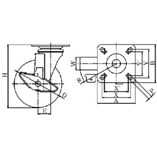 ユーエイ プレート式 自在 ステンレスキャスター ナイロン 車輪径150mm ストッパー付き Jタイプ SUS-J-S型 取付寸法90×90(75×75) SUS-NJ-150S