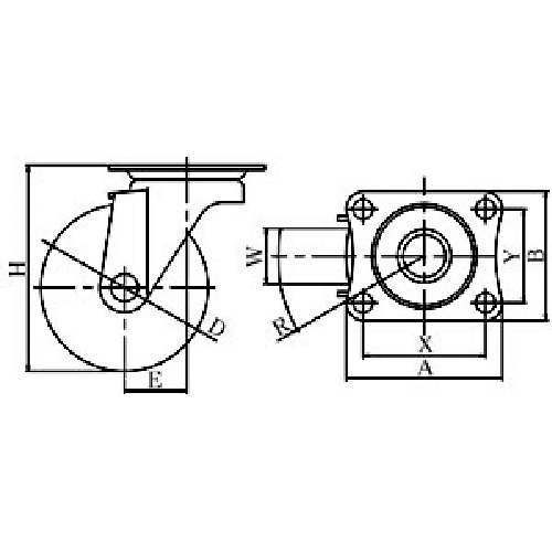 ユーエイ プレート式 自在 ステンレスキャスター ウレタン 車輪径50mm  Sタイプ SUS-SG型 取付寸法55×42 SUS-SG-50UR