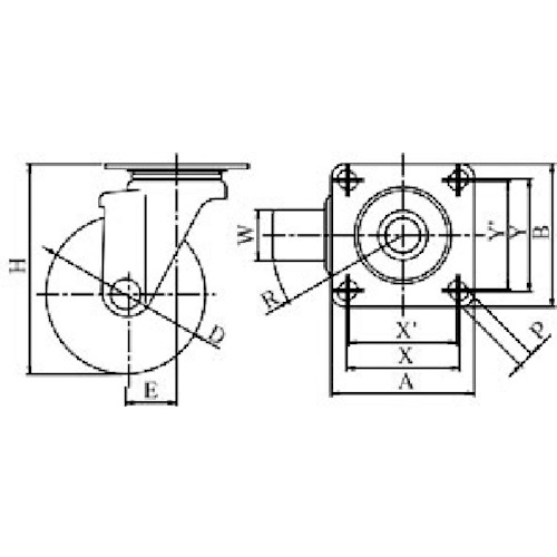 ユーエイ プレート式 自在 ステンレスキャスター ナイロン 車輪径100mm Jタイプ SUS-SJ型 取付寸法71×71(68×68) SUS-SJ-100N