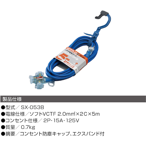 ハタヤ 2P延長コード 5m ブルー SX-053-B