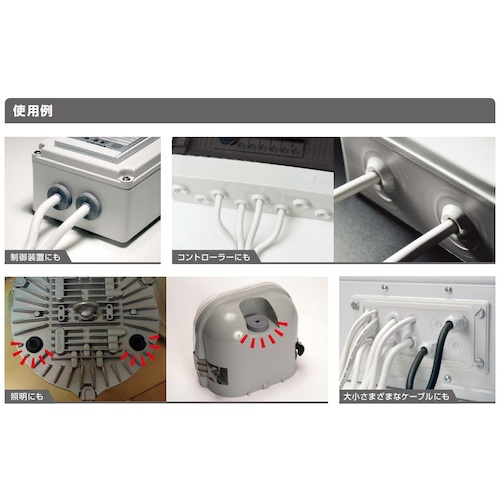 ●穴に軽く押し込むだけで取り付けでき、取付時間をケーブルグランドより大幅に短縮できます。