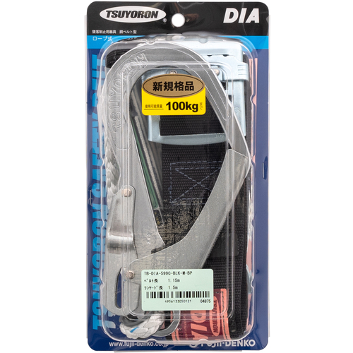 TSUYORON 胴ベルト型墜落制止用器具(ロープタイプ) DIA(三つ打ちロープ) 黒 Mサイズ 幅50MM×長さ1150MM TB-DIA-599-BLK-M-BP