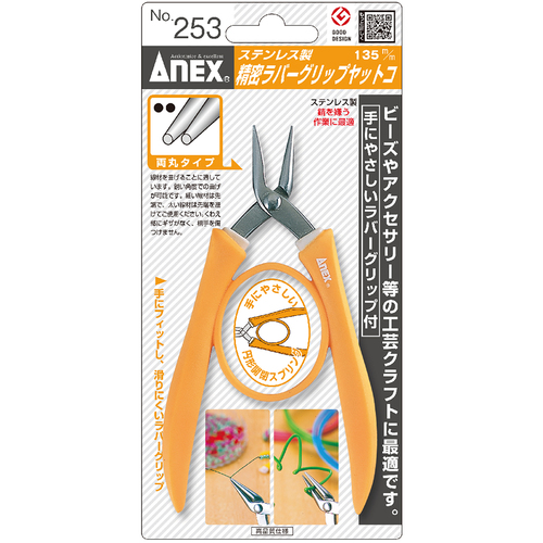 アネックス ラバーグリップヤットコ 両丸タイプ135mm 253