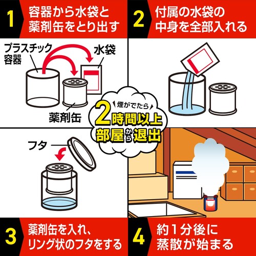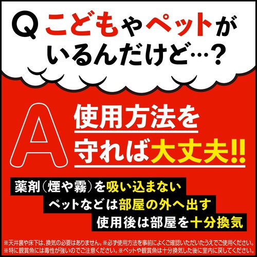 ●小鳥などのペット類、観賞植物は換気するまで部屋の外に出してください。また、観賞魚や観賞エビはエアーポンプを止めて完全密閉(水槽に覆いをして、ガムテープなどで密閉する)にして使用するか、換気するまで部屋の外に出してください。