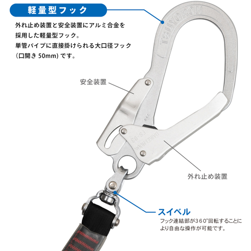TSUYORON コアハーネス 胴ベルト付き ツインランヤード付き 伸縮式ノビロン(BK) オレンジ Lサイズ TH-502-2NV93SV-OT-OR-L-2R23-BX
