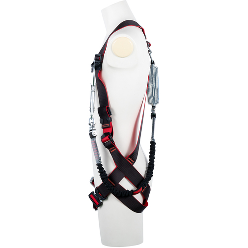 TSUYORON レヴォハーネス シングルランヤード付き 伸縮式ノビロン(BK) 黒・赤 Mサイズ TH-508-NV93SV-OT-BKR-M-R23-BX