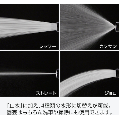 ●4タイプの水形で、園芸や洗車など様々な用途にご使用いただけます。