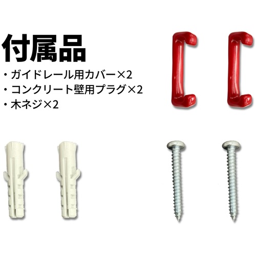 ●レール1m●木ねじ4個●コンクリート壁用プラグ4個●ガイドレール用カバーゴム2個