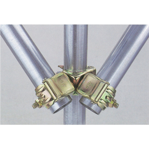 ●単管と単管で小屋等の組立時の垂直パイプに補強用斜め2方向を外側固定するクランプです。