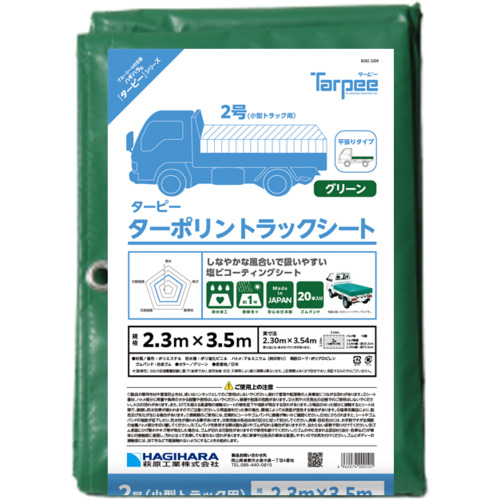 萩原 ターピー ターポリントラックシート 2号 小型トラック グリーン 2.3m×3.5m TP2