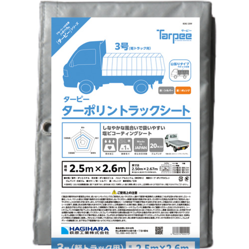 萩原 ターピー ターポリントラックシート 3号 軽トラック シルバー/オレンジ 2.5m×2.6m TPS-03