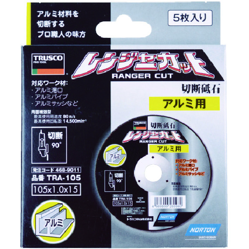 9. TRUSCO 切断砥石 レンジャーカット アルミ用 105X1.0X15 TRA-105