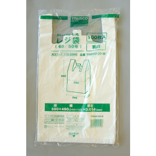 TRUSCO レジ袋 60/50号 580X490(345)mm 乳白 100枚入 TRB60-50-W