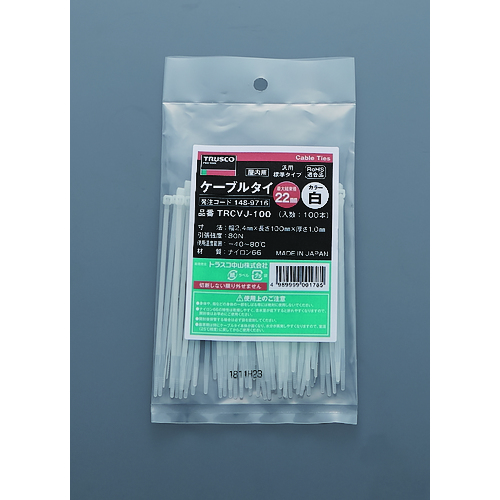 TRUSCO ケーブルタイ 幅2.4mmX100mm 最大結束Φ22 100本入 TRCVJ-100