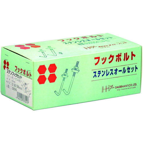 DAIDOHANT ステンレス フックボルトセット 3/16×38 (100個入) 00037321