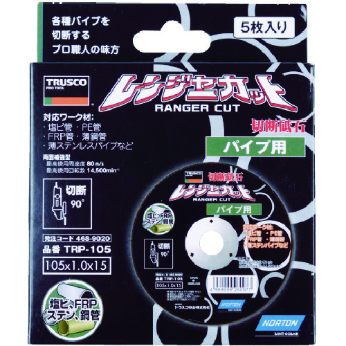 9. TRUSCO 切断砥石 レンジャーカット パイプ用 105X1.0X15 TRP-105