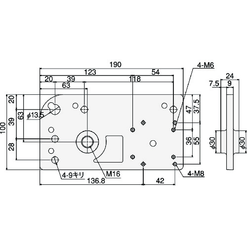 9. TRUSCO TSF40用アジャスタキャスタープレートDC L TSFK911