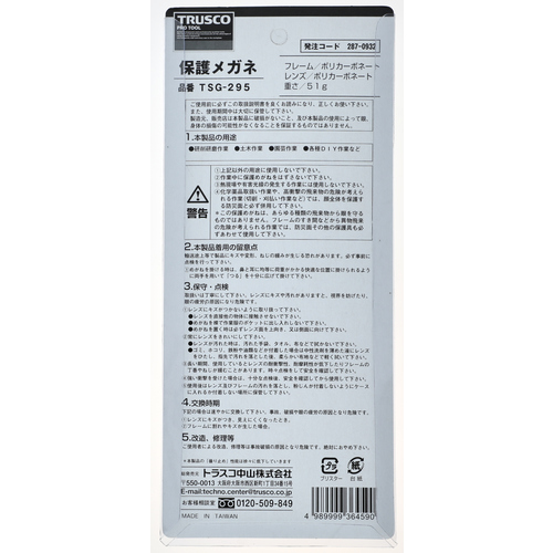 9. TRUSCO 一眼型保護メガネ 内メガネ併用型 TSG-295