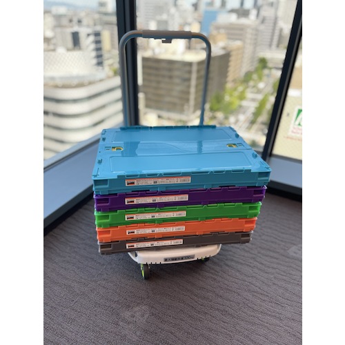 ●組み立て時も、折りたたみ時にも積み重ねができ荷崩れの心配がありません。