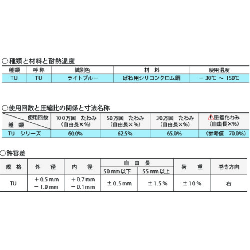 9. 東発 高たわみ用強力ばね TUタイプ 65%たわみ 43x250 ライトブルー TU43X250