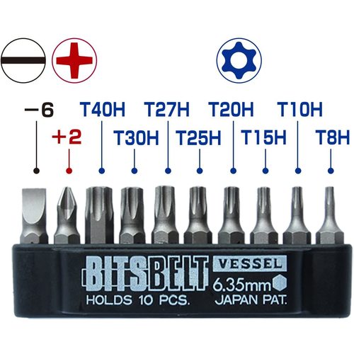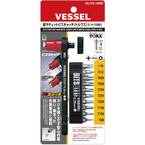 9. VESSEL 板ラチェットビスキャッチ(トルクス) No.TX-12MC(ビット10本組) TX-12MC
